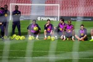 在南球门后的特拉韦萨拉一侧,出现了奇怪的一幕:前十个座位空无一人。这里将安装新的球迷互动区,球员们希望未来能与球迷有更多互动。当天,德科在上午11点20分出现在球场上,并向弗里克致意。孔德因在布鲁日比赛中受了轻伤,没有参加训练,加入了伤员行列。